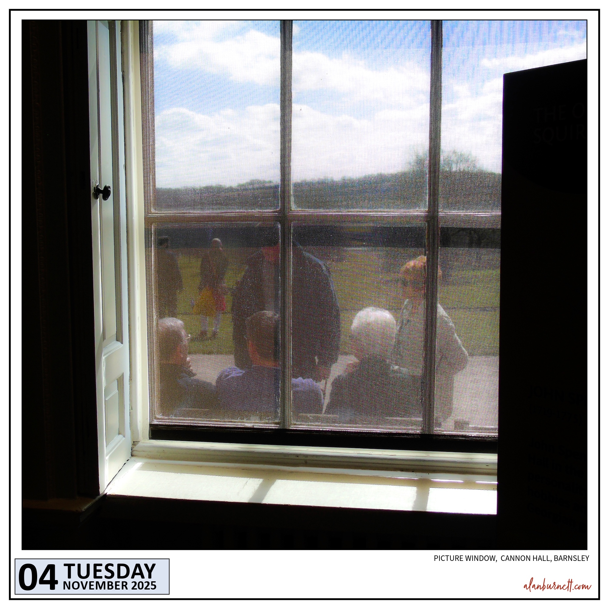 One of the windows at Cannon Hall in Barnsley had a mesh screen on it. It did interesting things to the shapes. The window frame became a picture frame. The exhibition inside became a viewing platform for the exhibition outside.
