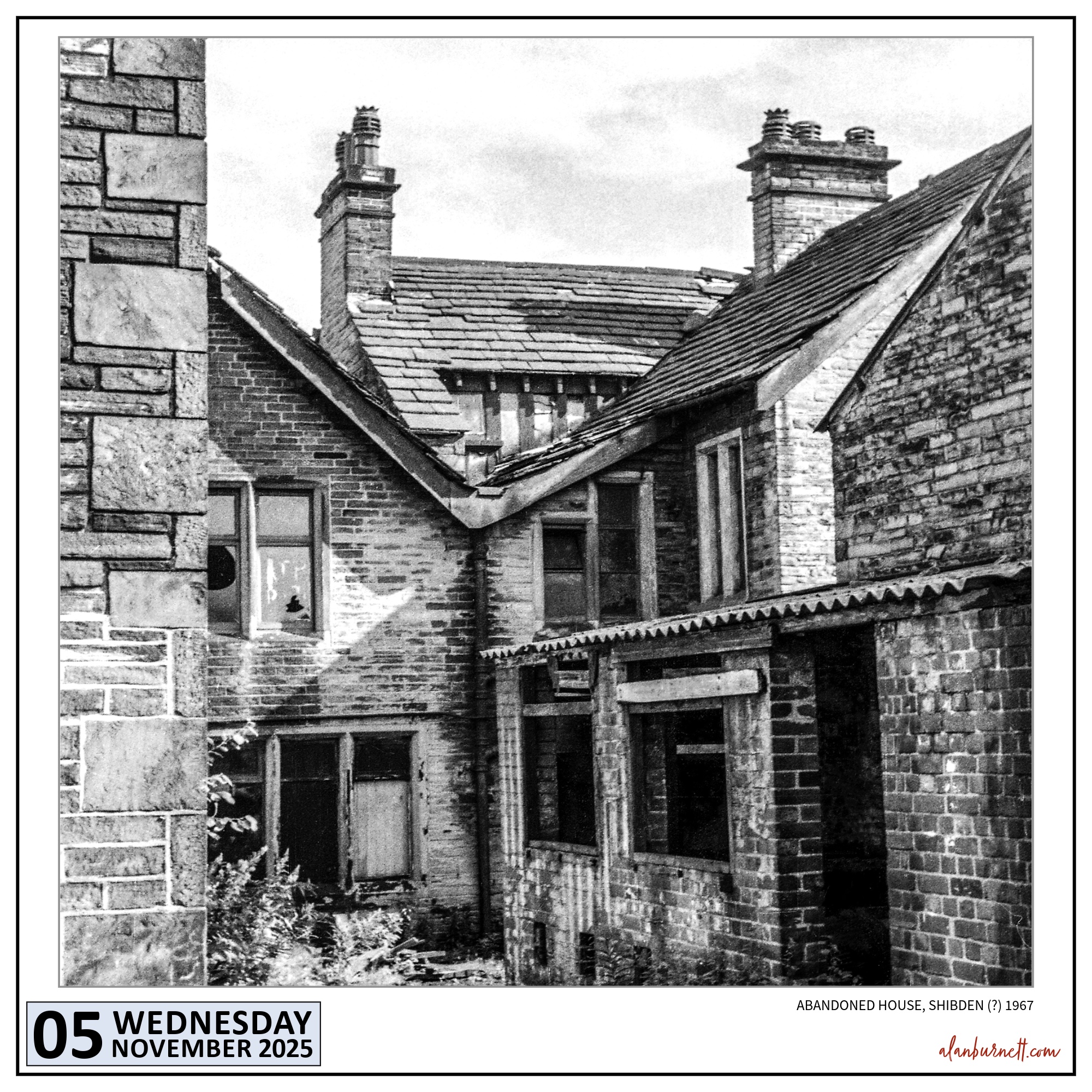 I may well remember, remember the fifth of November, but, for the life of me, I can’t quite remember where I took this photograph. In my defence, I could add that it was almost sixty years ago and the building was on its last legs then. I have a feeling it was on the hillside above Shibden Hall – could it have been the remains of the old Shibden Industrial School?