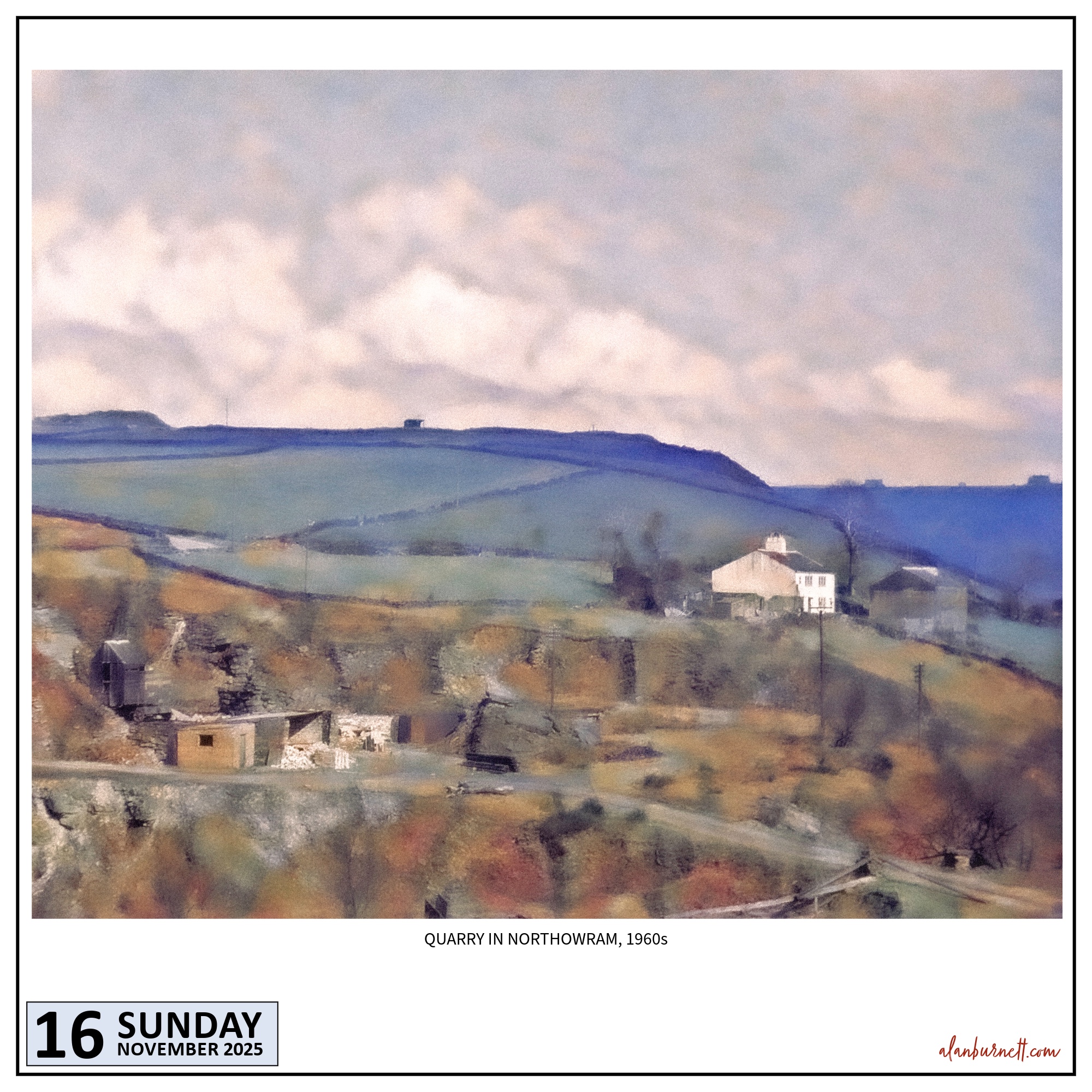 There is a great deal of satisfaction to be gained from messing about with old photographs (I use the phrase “messing about” in its technical sense – the experimental algorithmic application of miscellaneous digital filters). Here is what became of a 1960s photo of mine of one of the quarries in Northowram – I forget which quarry; it was a long time ago.