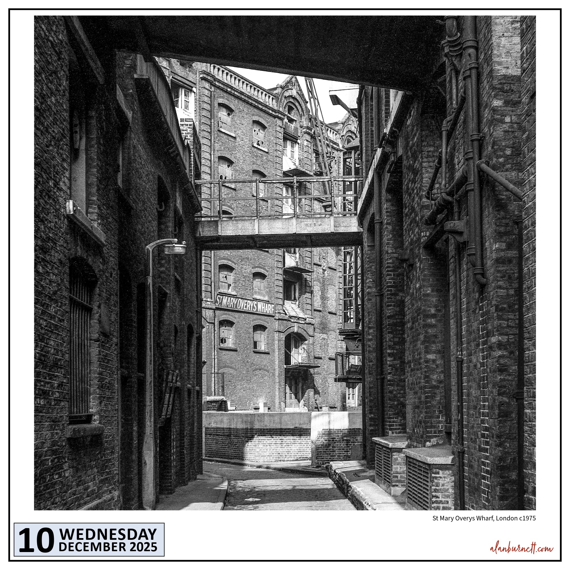 This photograph dates from the mid 1970s when I was living in London. I was particularly fond of the little back streets that lined the south bank of the Thames which, at the time, were full of old warehouses and abandoned wharves. Now they are full of bistros, outrageously expensive apartments and, in the case of this particular wharf, a reconstruction of The Golden Hinde!