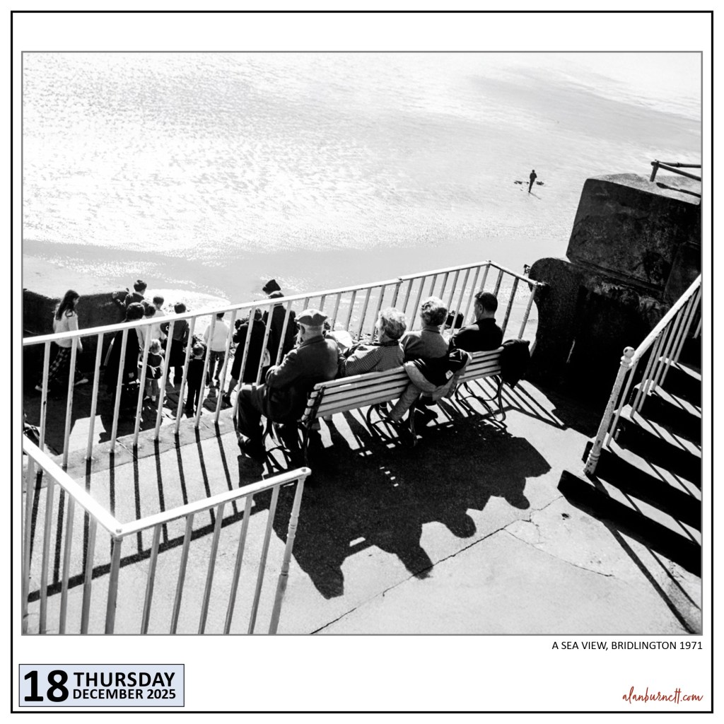 Bleached-out sand and shadows as black as Whitby jet. I can still remember spotting this view in Bridlington over fifty years ago and thinking, “That would make a good photo!” It did back in 1971; it still does in 2025.
