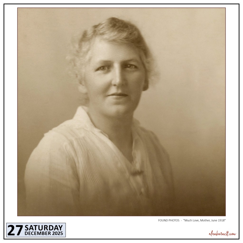 I’ve no idea who this is a photograph of; it came from one of those job lots of old photos I am so fond of. On the back of the print is written “Much love, Mother, June 1918”. The sentiment is lovely and the features are kind and, indeed, rather beautiful. It is the date that is so dreadful. Who carried this picture over unknown barbed wire fences? Who left this behind in some Godless killing trench?