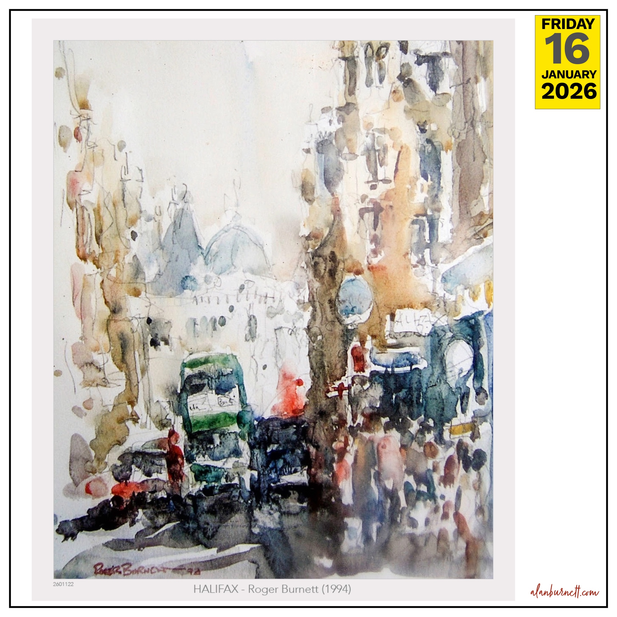……. You can mess around with Photoshop filters and AI edits until you are blue in the face (or green, or orange or polka dot striped) but you will never equal the originality and brilliance of a real artist. To illustrate my point I give you a picture of Halifax painted by my brother when he was living over here in the 1990s. Now, that’s art!