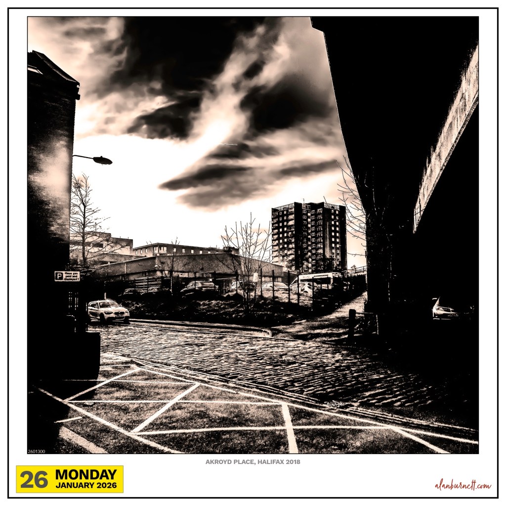 The colours aren’t particularly real, and you can’t make out much of the scene (it was taken in Akroyd Place, Halifax). It is the lines, however, that are fascinating: the way they bounce your eye around the scene like a ball bearing in a pinball machine.