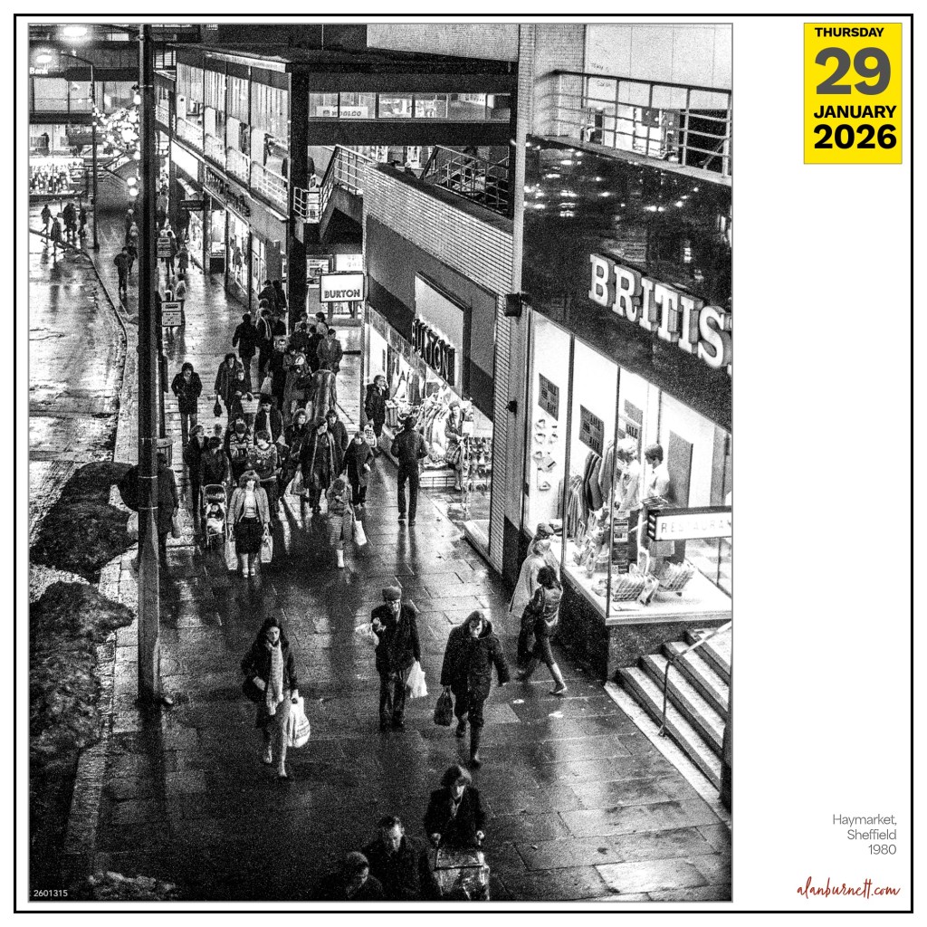 There are no cars in this scene which always makes dating it a little more difficult. The clothes don’t give many clues either: fashion takes a back seat to insulation when it comes to northern winters. Haymarket in Sheffield looks very different these days, and British Homes Stores is long gone. It must have been about 1980 when I took it – back in my Sheffield days.
