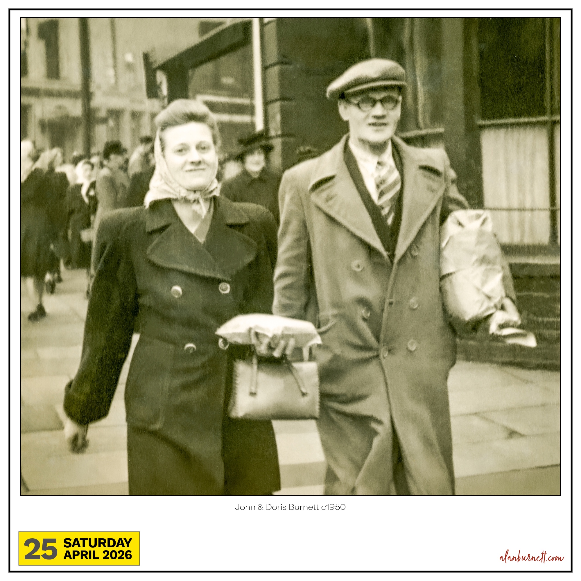 This is a picture of my Uncle John and Auntie Doris, taken 75 years ago. I have lived with this picture all of my life – seeing it as a child, sticking out of crumbling photo albums; as an adult, confined to cardboard boxes of family memories; and as an old man, where it has become an exercise in scanning and saving. One unanswered question has stayed with me all that time: what on earth was in that brown paper parcel?